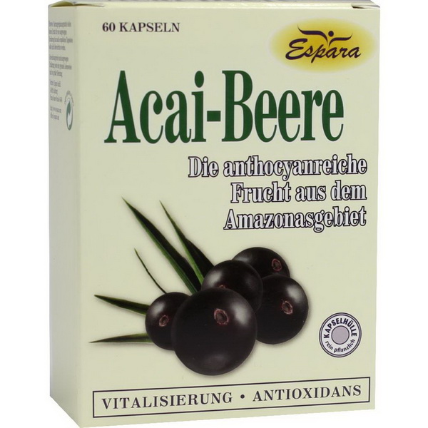Nahrungsergänzungsmittel mit der im Amazonasgebiet beheimateten kraftvollen Acai-Beere (Euterpe oleracea). Sie ist reich an Anthozyanen und schützt dadurch die Zellen vor Freien Radikalen.
