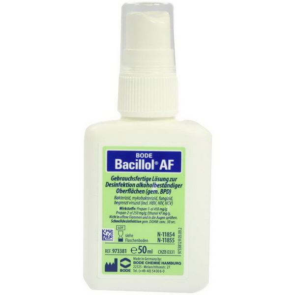 Bacillol® AF ist ein gebrauchsfertiges Schnell-Desinfektionsmittel mit umfassender Wirksamkeit für alkoholbeständige Flächen und Medizinprodukte. In Bereichen, in denen eine schnelle Einwirk- und Abtrocknungszeit und eine rückstandsfreie Auftrocknung gefragt ist.