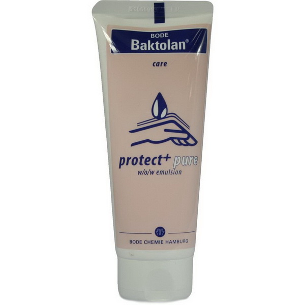Baktolan protect+ pure ist eine parfümfreie Wasser-in-Öl-in-Wasser-Lotion, welche die schnell einziehenden Eigenschaften einer O/W-Formulierung mit den schützenden und besonders pflegenden Eigenschaften der W/O-Formulierung kombiniert.