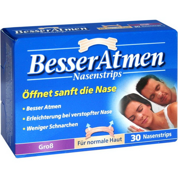 BesserAtmen Nasenstrips können sofortige Abhilfe bei Problemen mit der Nasenatmung schaffen, sie wirken rein mechanisch und sind daher frei von arzneilichen Wirkstoffen. BesserAtmen Nasenstrips öffnen sanft die Nase. Damit erleichtern sie die Nasenatmung z. B. bei Erkältungen oder Allergien und können so das Schnarchen reduzieren.