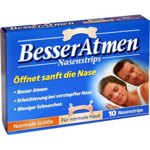 BesserAtmen Nasenstrips können sofortige Abhilfe bei Problemen mit der Nasenatmung schaffen, sie wirken rein mechanisch und sind daher frei von arzneilichen Wirkstoffen. BesserAtmen Nasenstrips öffnen sanft die Nase. Damit erleichtern sie die Nasenatmung z. B. bei Erkältungen oder Allergien und können so das Schnarchen reduzieren.