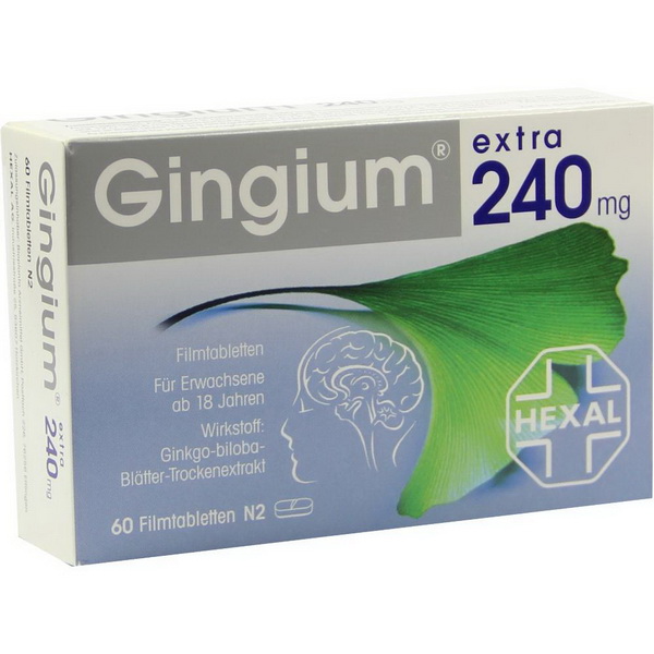 Gingium® extra 240 mg wird angewendet zur symptomatischen Behandlung von hirnorganisch bedingten geistigen Leistungseinbußen. Die Anwendung erfolgt im Rahmen eines therapeutischen Gesamtkonzeptes bei fortschreitender Abnahme bzw. Verlust erworbener geistiger Fähigkeiten (dementielles Syndrom) mit den Hauptbeschwerden: Gedächtnisstörungen, Konzentrationsstörungen,