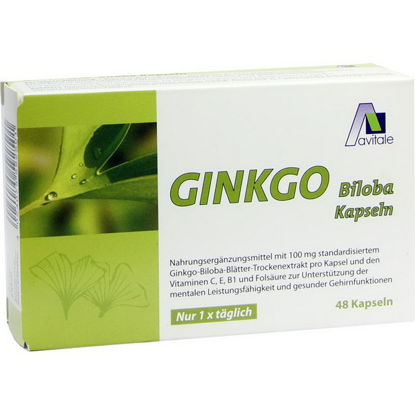 Mit täglich nur einer Kapsel der Avitale Ginkgo Biloba Kapseln werden 100mg Ginkgo-Biloba-Blätter Trockenextrakt sowie ein abgestimmter Vitamin-Komplex bestehend aus den Vitaminen C, E, B1 und Folsäure verzehrt.