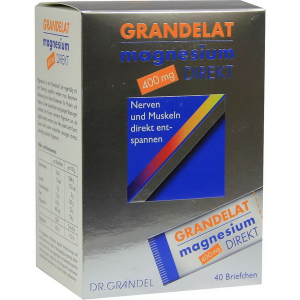 Magnesium ist ein Mineralstoff, der regelmäßig mit der Nahrung zugeführt werden muss. Besondere Bedeutung hat dieses Bioelement für Muskeln, Herz und Nerven. Magnesium trägt zu einer normalen Muskelfunktion einschließlich des Herzmuskels und einer normalen Nervenfunktion bei. Der Erwachsene benötigt je nach Alter und Geschlecht eine tägliche Zufuhr von 300 – 400 mg Magnesium. In Belastungssituationen scheidet der Körper vermehrt Magnesium aus, das täglich ersetzt werden muss. Wer zudem durch Sport, Sauna oder andere körperliche Leistungen schwitzt, benötigt zusätzlich Magnesium. Bereits mit einem Briefchen GRANDELAT magnesium DIREKT kann die Ernährung mit 400 mg Magnesium gezielt aufgewertet werden. Das wohlschmeckende Magnesium-Pulver in der praktischen Briefchenform kann überall und zu jeder Zeit genommen werden – schnell, ohne Wasser.