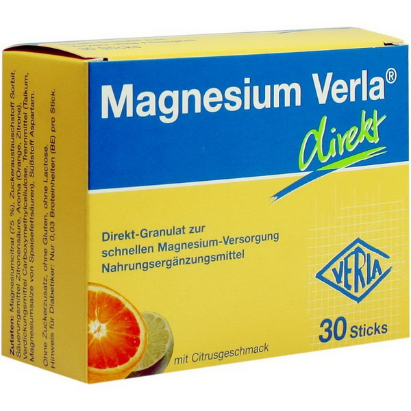 Magnesium Verla® direkt ist ein Direkt-Granulat zur praktischen und schnellen Einnahme ohne Flüssigkeit - einfach auf die Zunge geben und genießen! Im Gegensatz zu anderen Magnesium-Direktgranulaten wird ausschließlich organisches Magnesiumcitrat verwendet.