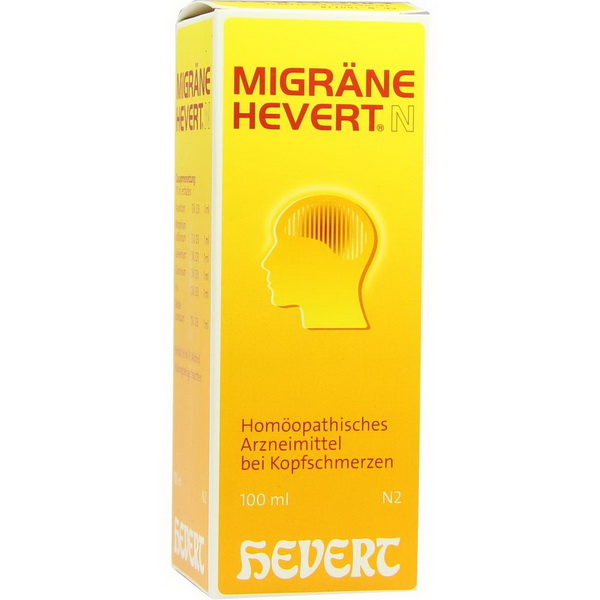 Migräne Hevert N Tropfen enthalten zur Beseitigung gefäßbedingterKopfschmerzen spezifisch wirksame homöopathische Bestandteile inausgewogenem Verhältnis. Die menschlichen Gefäße, besonders die desGehirns, reagieren auf psychische oder körperliche Überlastung oft mitSchmerzen. Diese können durch abnorme Veränderungen des Durchmessersvon Versorgungsgefäßen verursacht sein. Die Gefäße verengen sichzunächst und erweitern sich später über das normale Maß hinaus.