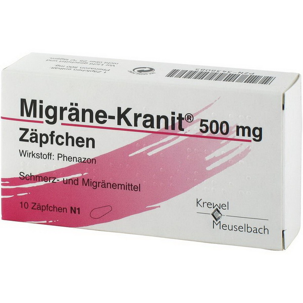 Migräne-Kranit® 500 mg Zäpfchen sind ein Mittel bei Migränekopfschmerzen und anderen Schmerzen.
