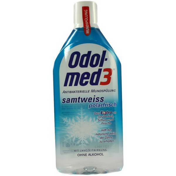 Odol-med3® samtweiss Polarfrisch Mundspülung mit dem Extra an Sauberkeit, Schutz und Frische ist die perfekte Abrundung der täglichen Mundhygiene. Denn die antibakterielle Formel bekämpft Bakterien auch dort, wo die Zahnbürste nur schwer hinkommt. Durch die spezielle Kombination von Inhaltsstoffe beugt Odol-med3® samtweiss Polarfrisch verfärbten Zahnbelägen vor und hilft so, das natürliche Weiss der Zahne zu erhalten. Die eisklare Formel mit natürlichem Eucalyptol hält die Mundflora im Gleichgewicht.