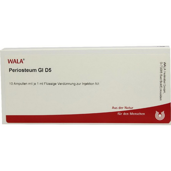 Flüssige Verdünnung zur Injektion: 1 ml enthält: Periosteum bovis Gl Dil. D.. 1 ml (HAB, Vs. 41b)
