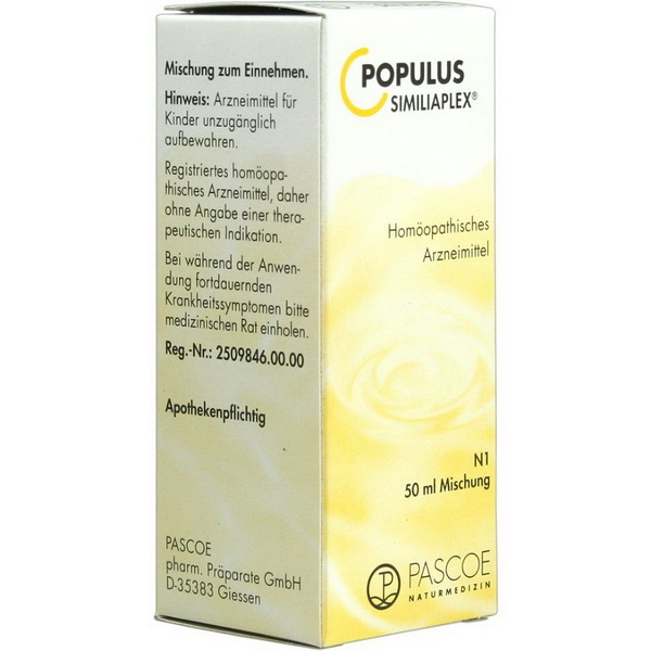 POPULUS Similiaplex® ist ein registriertes homöopathisches Arzneimittel, daher ohne Angabe einer therapeutischen Indikation. Bei während der Anwendung fortdauernden Krankheitssymptomen bitte medizinischen Rat einholen.