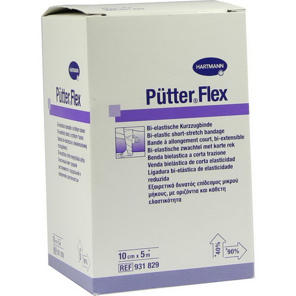 Besonders dünne, bi-elastische Kurzzugbinden, Längsdehnbarkeit ca. 90 % mit zusätzlicher Querelastizität; hoher Arbeitsdruck mit niedrigem Ruhedruck