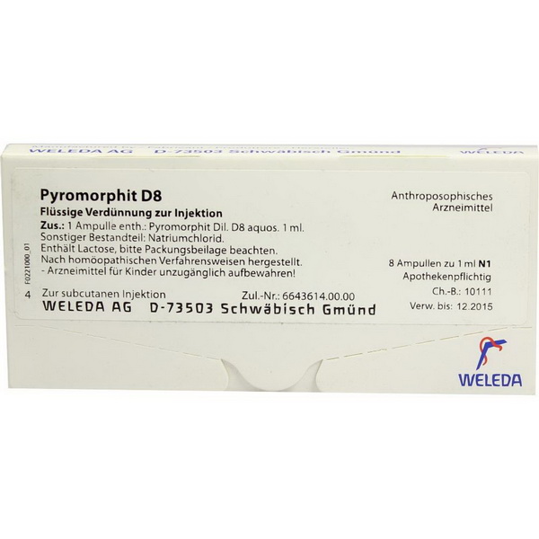 1 Ampulle enthält: Wirkstoffe: Pyromorphit Dil. D8 aquos. 1 ml.
