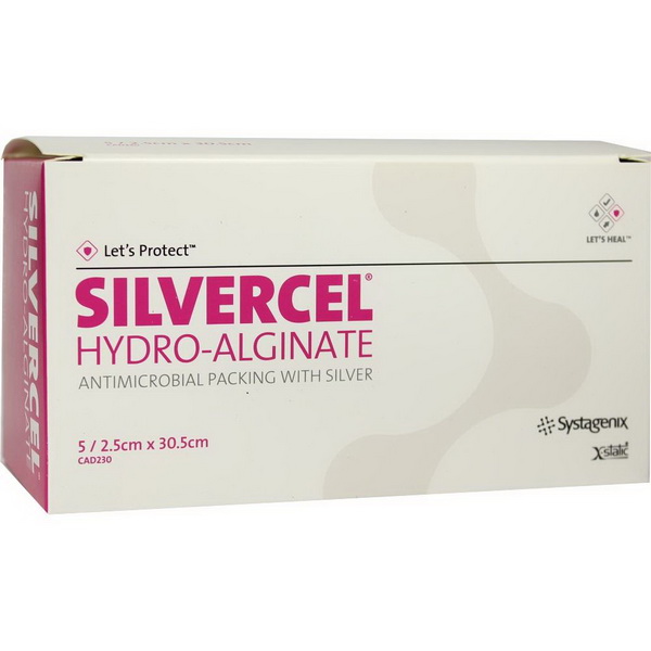 SILVERCEL® Hydroalginat Tamponade mit Silber ist ein steriler Vliesstoff, der aus einem an Guluronsäure reichen Alginat, Carboxymethylcellulose (CMC) und silberbeschichteten Nylonfasern besteht. Diese einzigartige Zusammensetzung ermöglicht effektives Exsudatmanagement bei infizierten oder stark bakteriell belasteten Wunden.
